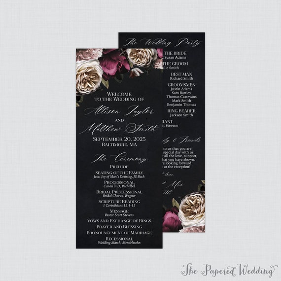 Buy Printable OR Printed Wedding Programs With Moody Flowers