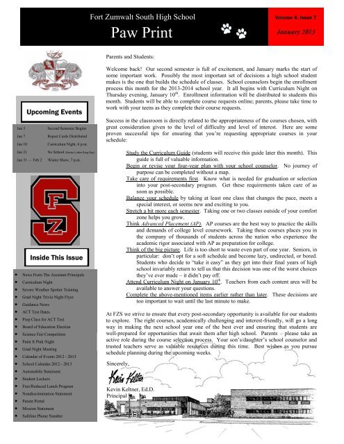 FZS Newsletter Fort Zumwalt South High School Fort Zumwalt