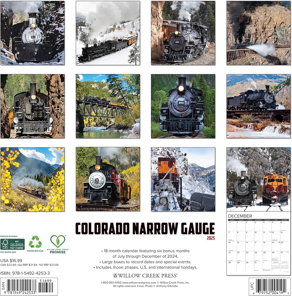 Colorado Narrow Gauge Railroads 2025 Wall Calendar Calendars.com